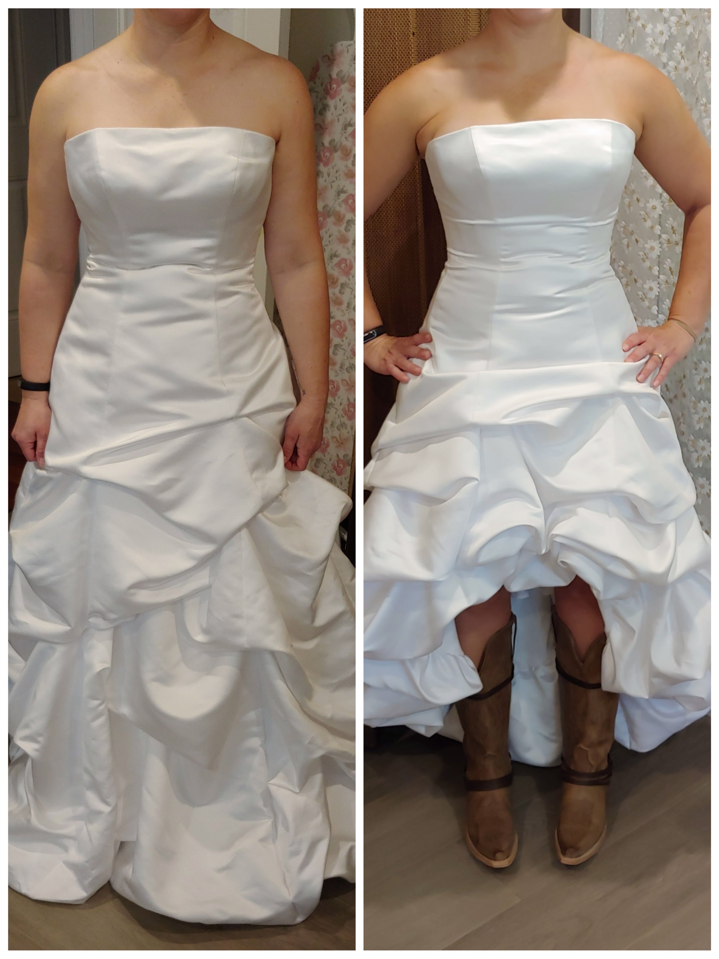 Whether you need standard “adjust the straps, take in the sides, and shorten the hem” or “replace the zipper with a corset, remove the train and convert the skirt to high-low” -we’re here for it!